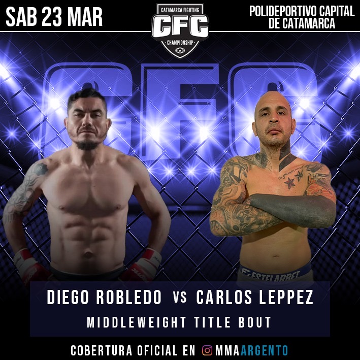 El sábado 23 de marzo se llevará a cabo la tercera edición del «CFC» (Catamarca Fighting Championship), en las instalaciones del Polideportivo Fray Mamerto Esquiú. Con la presencia del combate de fondo de Diego Robledo, además, de peleas profesionales y amateurs.